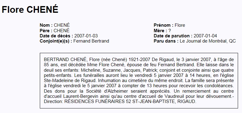 Bertrand Chené, Flore (Née Chené) (1921-2007)