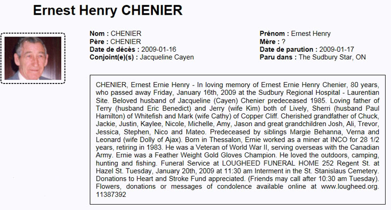 Ernest (Ernie) Henry CHENIER