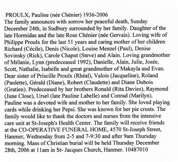 Proulx, Pauline (Née Chénier) (1937-2006)