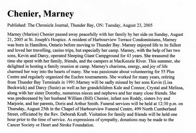 Chenier, Marion "Marney" (Née Smith) (circa 1930-2005)