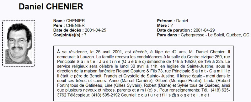 Chenier, Daniel (1959-2001)