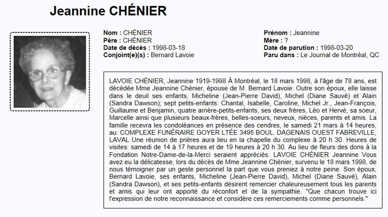 Lavoie, Jeannine (Née Chénier) (1921-1998)