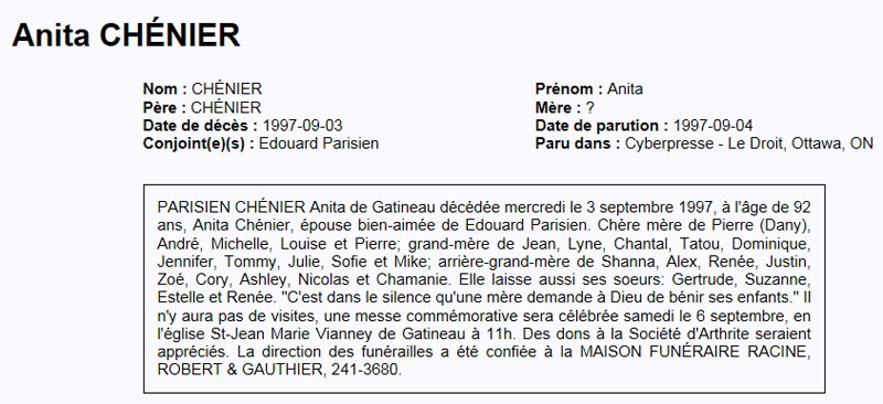 Parisien, Anita (Née Chénier) (1905-1997)
