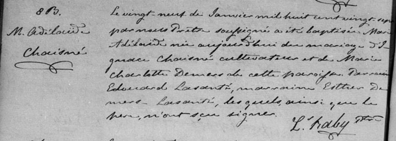 Baptême de Marie Adélaïde Chaisné