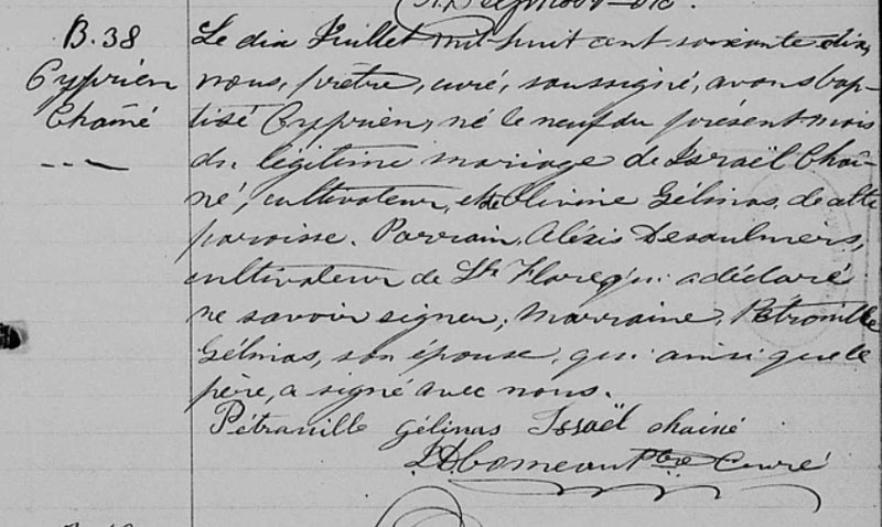 Baptême de Cyprien Chaîné
