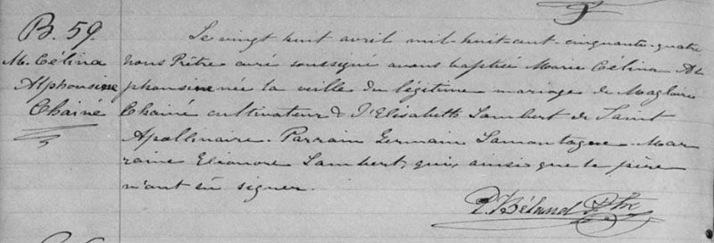 Baptême de Célina Alphonsine Chainé