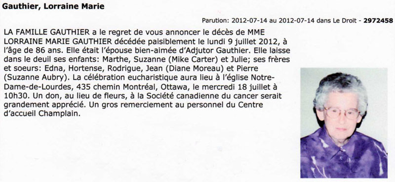 Gauthier, Lorraine Marie (Née Chénier) (1925-2012)