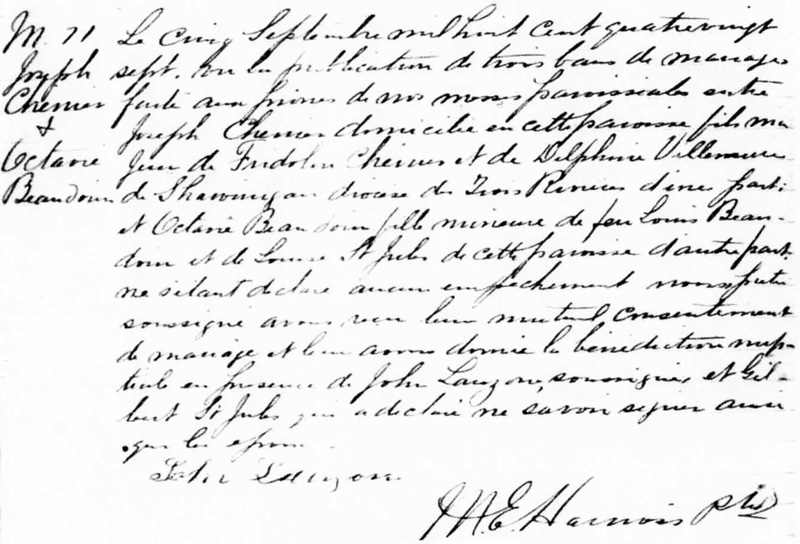 Marriage of Joseph Chénier and Octavie Beaudoin