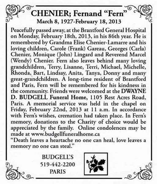 Fernand "Fern" Achille CHENIER