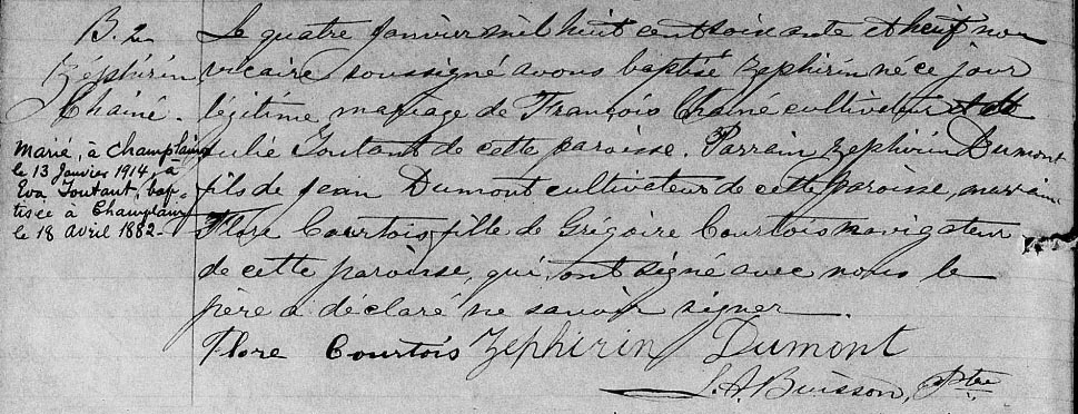 Baptism record of Zéphirin Chainé