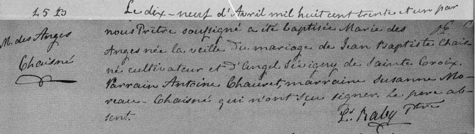 Bap. of/de Marie des Anges Chaisné