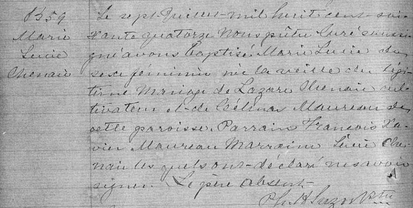 Bap. of/de Marie Lucie Chenaie