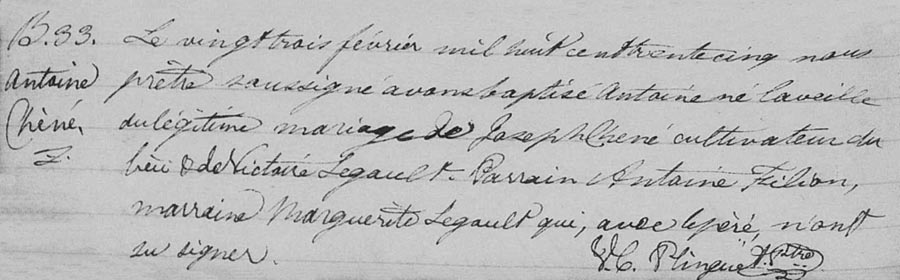 Bap. of/de Antoine Chené