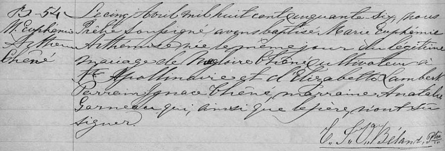 Bap. of/de Euphémie Arthémise Chêné