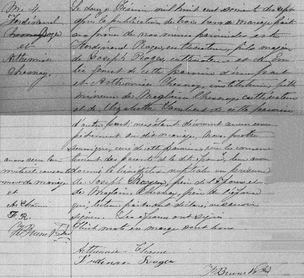 Mar. of/de Euphémie Arthémise Chesnay & Ferdinand Roger