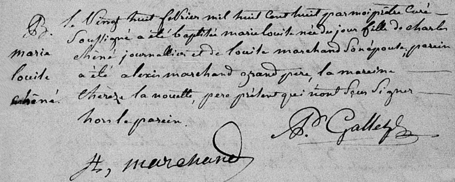 Bap. of/de Marie Louise Chêné