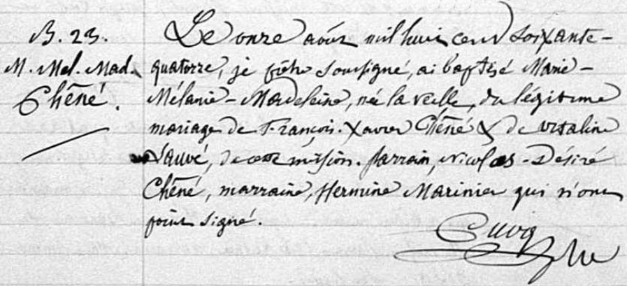 Bap. of/de Marie Mélanie Madeleine Chêné