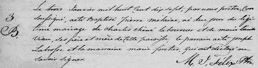 Bap. of/de Pierre Mélaire Chêné
