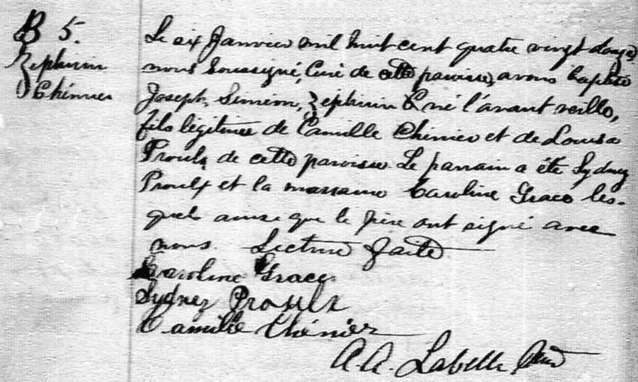Baptism of Joseph Siméon Zéphirin Chénier