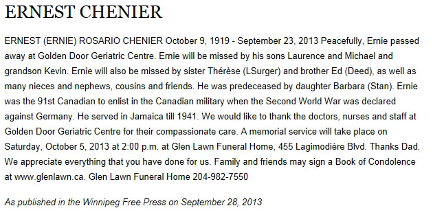 Chenier, Ernest (Ernie) Rosario (1919-2013)