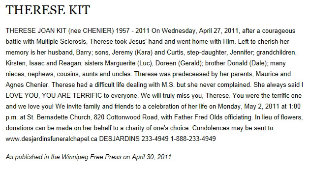 Thérèse Kit, (Née Chénier) (1957-2011)