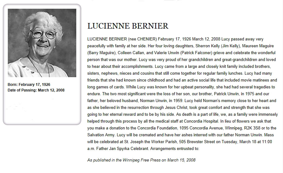 Bernier, Lucienne (Née Chénier) (1926-2008)