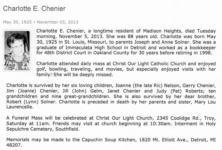 Chenier, Charlotte Ellen (Née Solner) (1925-2013)
