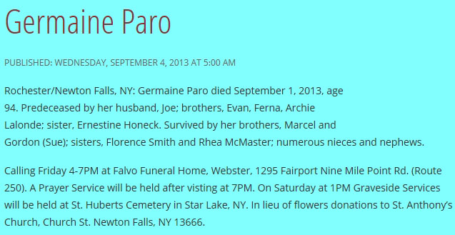 Paro, Germaine (Née Lalonde) (1918-2013)