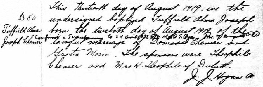 Baptism of Armand Chénier (Tuffield Alma Joseph Chénier)