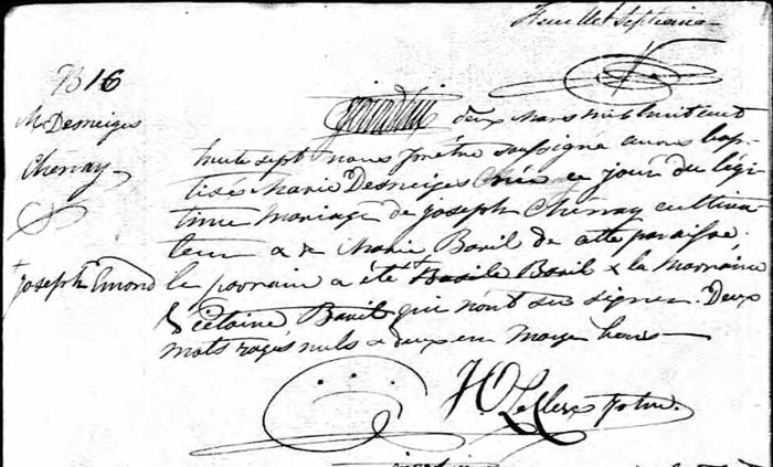 Baptism record of Marie Desneiges Chenay