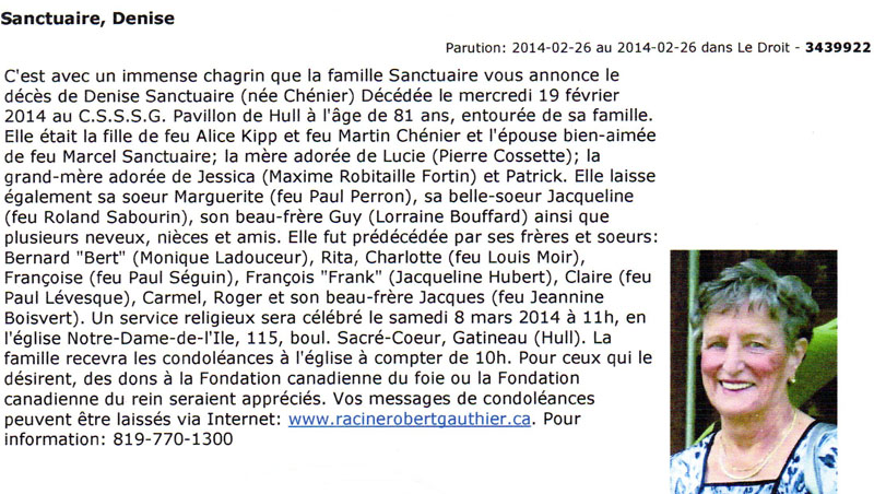 Sanctuaire, Denise (Née Chénier) (1932-2014)