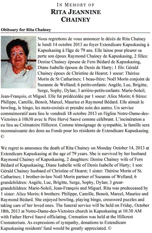 Chainey, Rita (Née Bédard) (1933-2013)