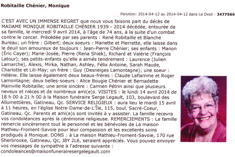 Robitaille Chénier, Monique (1939-2014)