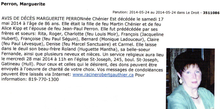 Perron, Marguerite Mary-Anne Marie (Nee Chénier) (1927-2014)