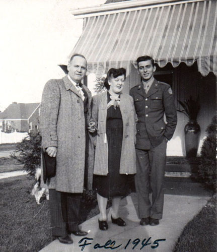 Group photo of Zéphirin Chénier with his wife Mildred and son Robert (Fall 1945)