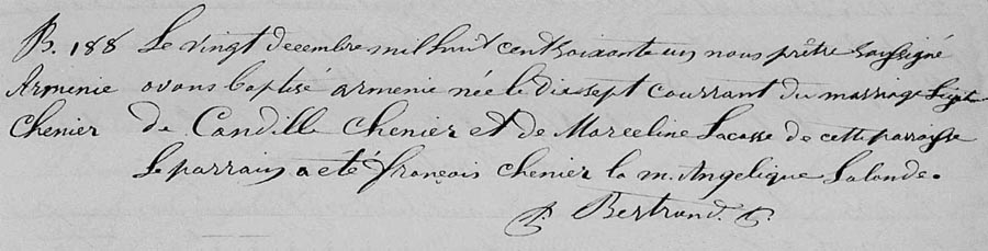 Baptism record for Armenie Chenier