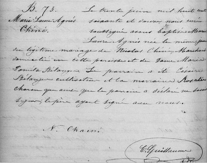 THE DESCENDANTS OF BERTRAND CHESNAY dit LAGARENNE