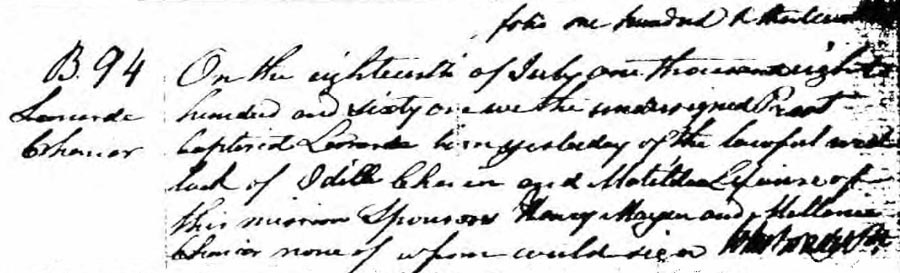 Record de baptême de Léonarde Chénier