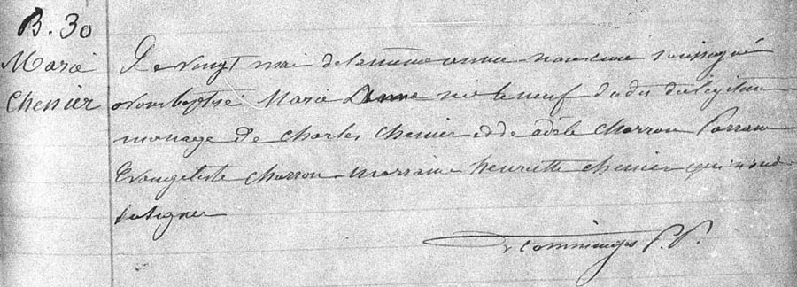 Baptism record of Marie Chénier