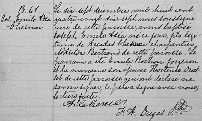 THE DESCENDANTS OF BERTRAND CHESNAY dit LAGARENNE