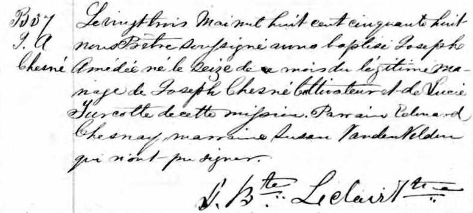 Baptism record of Joseph Amédée Chesné