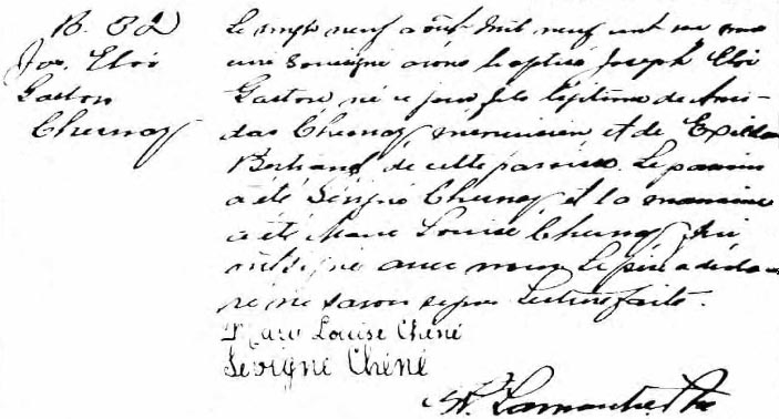 Baptism record of Joseph Eloi Gaston Chesnay