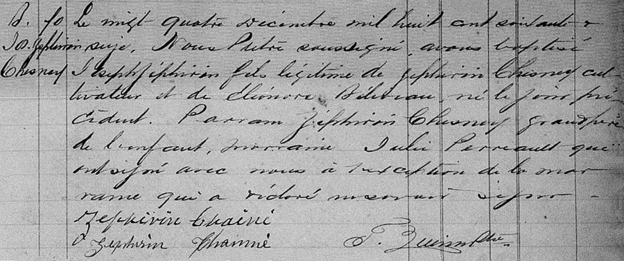 Baptism record of Joseph Zéphirin Chesnay
