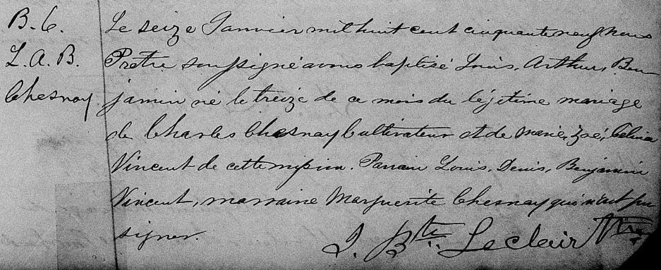 Record de baptême de Louis Arthur Benjamin Chesnay