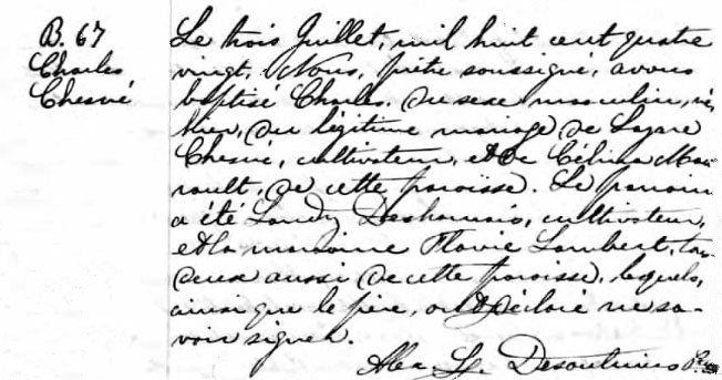 Baptism record of Charles Chesné