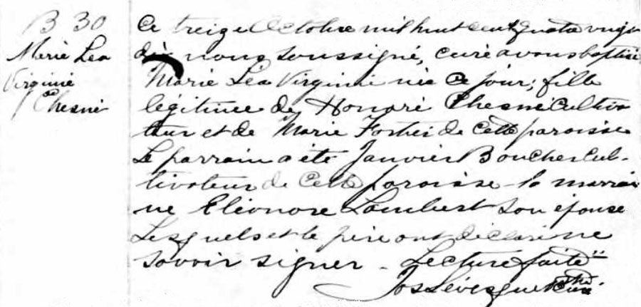Baptism record of Marie Léa Virginie Chesné