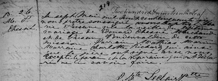 Baptism record of Marie Susan Chesné