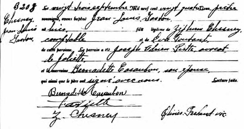 Baptism record of Jean-Louis Gaston Chesney