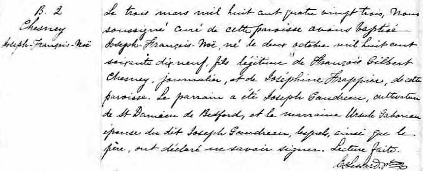 Record de baptême de Joseph François Noë Chesney