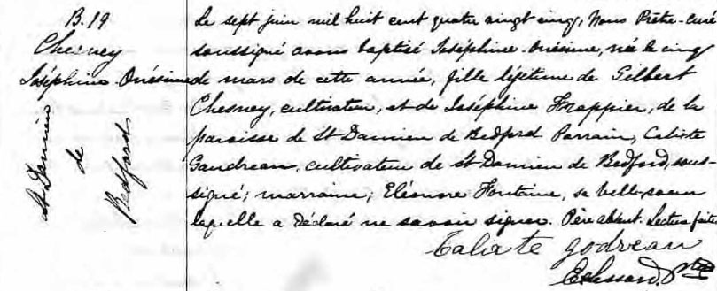 Record de baptême de Joséphine Onésime Chesney